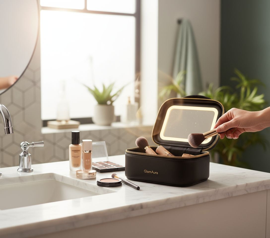 GlamAura Light Box réinvente le rangement maquillage avec son miroir LED haute définition et ses compartiments modulables.